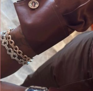 Davido took to his Instagram story to share a photo of the sentimental accessory during his lavish white wedding in Miami, United States.